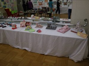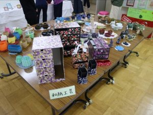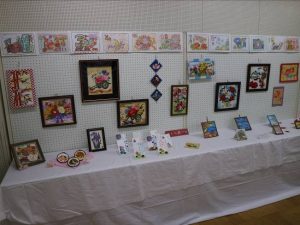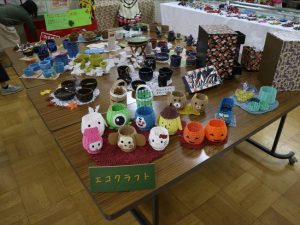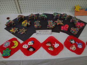 今年も、上記日程で「第64回えにわ市民文化祭(展示部門)」に患者様、利用者様によって製作された品々を展示させていただきました。作品は、当法人内の精神科作業療法・精神科デイケア・介護老人保健施設において、リハビリテーションや生活の一環として、患者さんの達成感、有用感、自信、楽しみや作業技術を獲得する目的で作成した物です。多くの患者さんはこの文化祭で作品を展示することを非常に楽しみにしており、飾られた作品を見学した際には、大変楽しそうに互いに作品を褒めあう姿が印象に残りました。また、室内展示の他に、体験コーナーとして(当法人のブースでは恒例としております)患者さんと一緒に作成した「たこ焼きポン」というゲームを設置した所、沢山の方に体験して頂けました。このような作品展示、体験コーナーを展開することによって、市民の皆様と患者様、利用者様、また職員とが相互に交流できることを実感できる場になりました。約450人という、大変多くの方々に見学していただき、アンケート方式で貴重なご意見やご感想を頂きました。見学者の方が作成者への思いを寄せてくれたことを、ご本人にお伝えすることで、喜びや制作意欲に繋がったと感じています。ここに相互的な交流が成立したと大変嬉しく感じております。今後も、一層の努力を重ねて来年の展示に向けて日々の作品作成へと取り組んでいきたいと思いますのでどうぞよろしくお願いします。